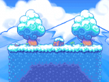 In the first phase, Frostwind chases the Hero throughout a semi-flat segment of the level with many "bottomless" pits. Once the battle begins, the screen will auto-scroll to the right, forcing the player to keep moving at a steady rate. The player must stay in the center of the moving screen and fire occasionally at Frostwind using their Snowshooter in order to keep the boss from getting too close and inflicting damage through contact. Shots fired at Frostwind will not inflict damage to it, and will only prevent the boss from advancing closer to the player. At some points, Frostwind will fly into random pits in order to ambush the Hero as they approach.