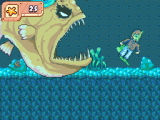 At first, The Hero must swim away from the Angler King as he chases them through an long underwater tunnel system, and shoot him with the Starzooka occasionally to halt his movement and hold him back. Every once and a while, the Angler King will speed up significantly and attempt to bite the Hero. This is similar to the first part of the battle with Frostwind.