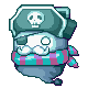 Baki Beard's ghost form is more than eight times the size of his normal form. Like other Ghost Baki, he is a somewhat pale, grey-blue color. Unlike other ghosts, his scarf isn't the same color as his body. Instead, Baki Beard's scarf is now magenta and cyan. He still wears an eye patch on his right eye, and a pirate hat with a skull on it.