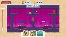 In Build Mode, the player is given a Hopper, a Megamini, and a Bounce. One possible solution is for the player to place the Hopper on the blocks in the center of the left section, the Megamini under the red door, and the Bounce under the floating platform.
