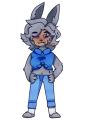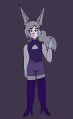 In GuyThatExists' short stories, Milfre takes the appearance of @twindrill's interpretation. Milfre is a female Raposa with grey fur and long grey hair. She wears a blue jean jacket tied around her chest, and a pair of jeans. She has blue nail polish on her fingers and wears grey socks with darker grey slippers. In her Artifact form, Scribble covers her body and she dons the Crystal Mask. She carries the Pen and Pencil, and has Branches from the Tree of Ages poking out of her fur.