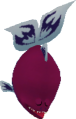 Platform Fish are burgundy colored fish with a humanoid face - two eyes, two slit nostrils, and a mouth full of white, jagged teeth. It has four fins on its body, one dorsal fin, one caudal (tail) fin, and two pelvic fins. Each of these fins are lavender with darker blue markings on them.