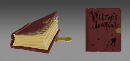 In-game, Wilfre's Journal is a red, hardcover book that has the name "Wilfre" written on it in ink. It has an ink blotch in the bottom right corner.
