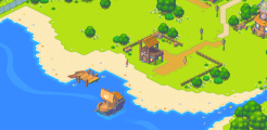 After finding the template for the Epic Statue in Angle Isle, the Hero returns Indee and his family to the village, meeting with Jowee at the Beach Gate. Jowee is starstruck, and later joins Indee on the beach to get some pointers on treasure hunting. Indee asks the Hero to clear the Darkness from the eastern half of the beach, revealing the Boat House, the Docks, the abandoned ship, and an uncolored Lighthouse.
